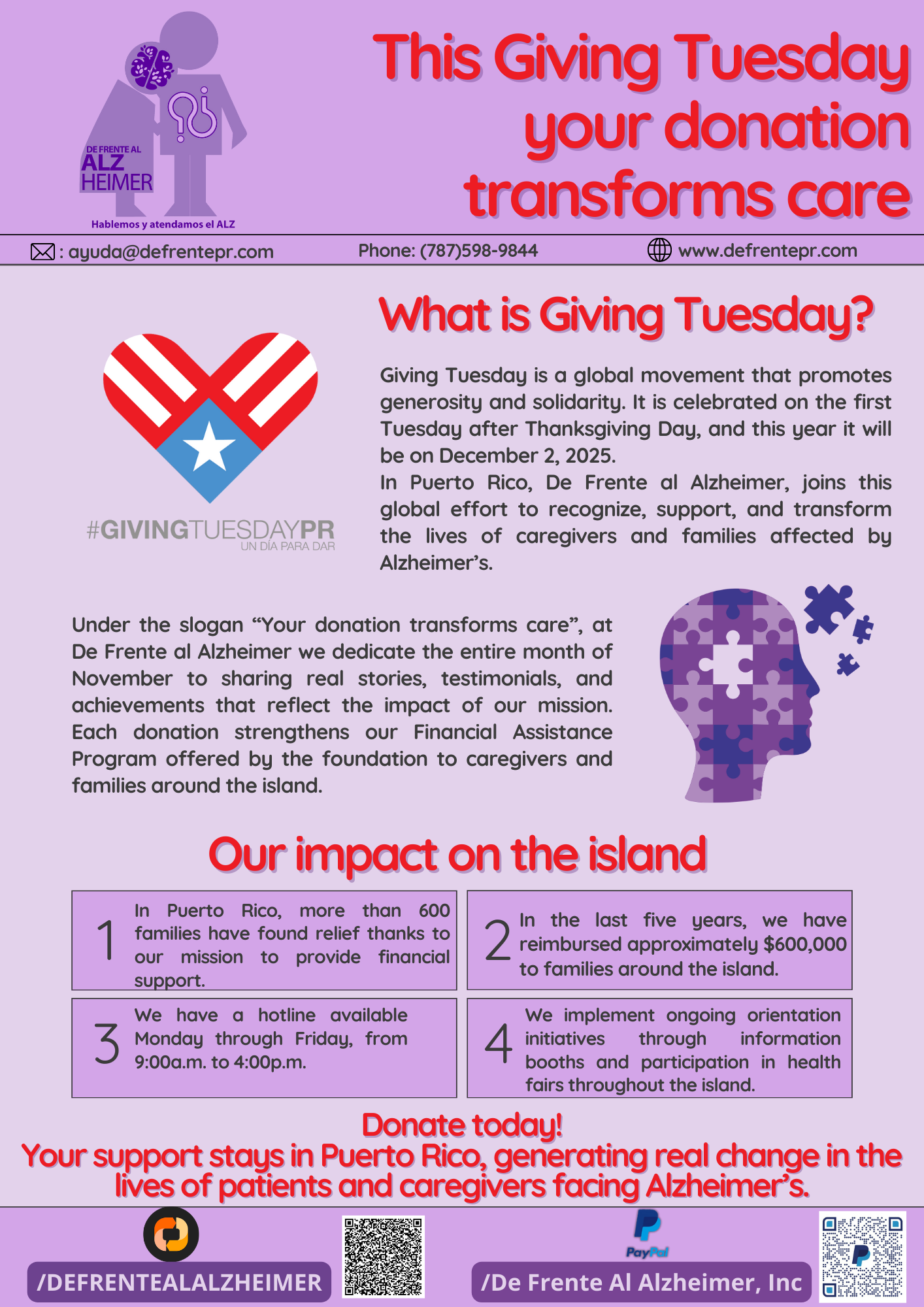 At De Frente al Alzheimer, we remain committed to supporting the families of Puerto Rico who confront Alzheimer’s with courage and love. Today, we share important updates about our impact on the island: